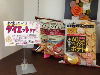 ほかにも、薄味で食物繊維が多く入っているおせんべいや、血糖値が上がりにくい甘味料を使ったキャンディーやプリンの販売もしています。