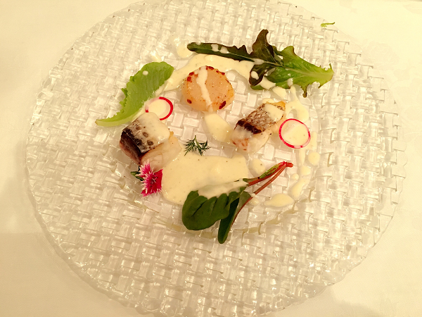 ホタテ貝と鮮魚のポワレ フランス産シェーブル(山羊)チーズソース添え(172kcal)