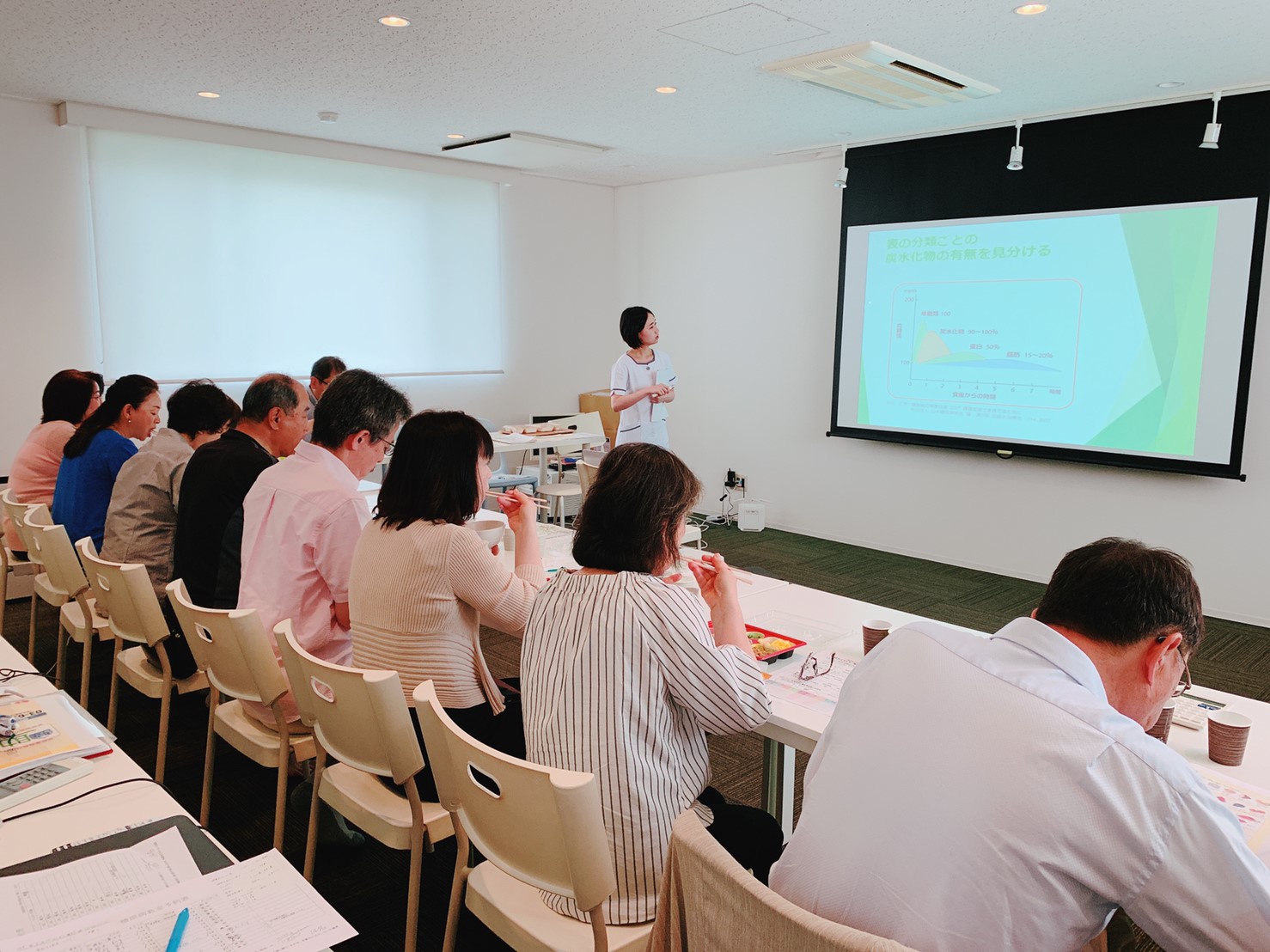 宅配クックのお弁当を食べながら、食品交換表の使い方について栄養士からお話しさせていただきました。