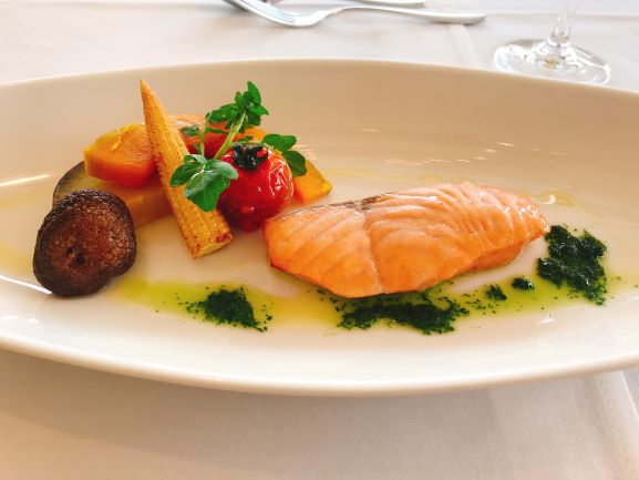 レストランのシェフにご協力いただいた低カロリーのコース料理とともに、