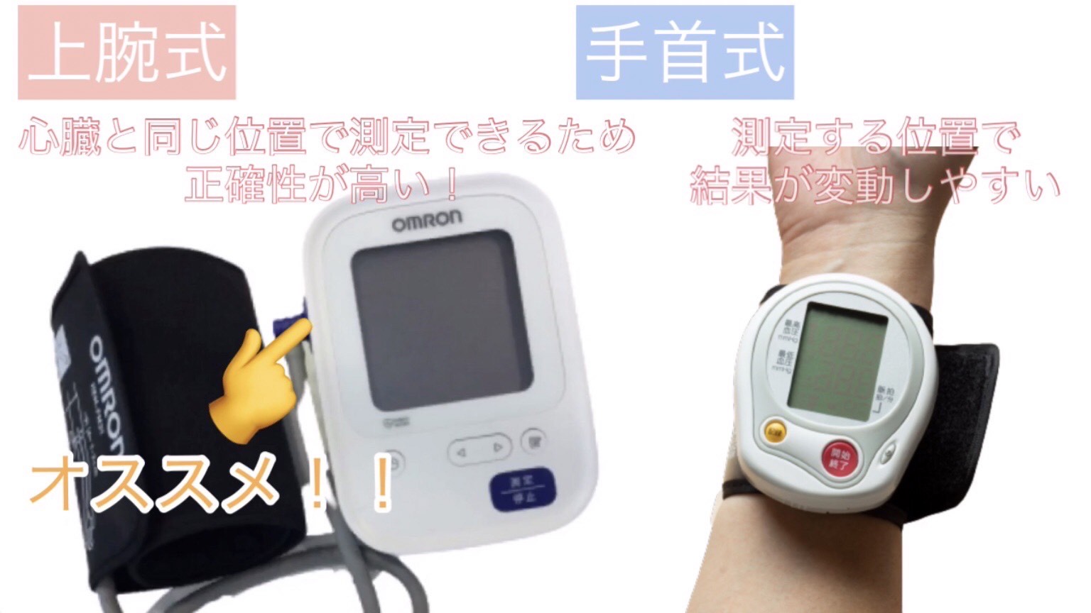 血圧計の種類は主に上腕式と手首式がありますが、心臓と同じ位置で測定ができて正確性が高い上腕式がおすすめです。