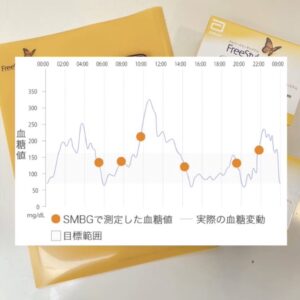 指先で測る血糖は針を刺して血液を出す必要があり、その時点の血糖値しかわかりません。