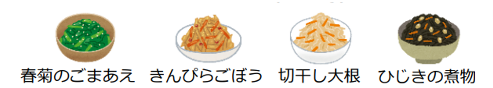 ②以下のような副菜を1皿(約70g)増やす (食物繊維+約4g)