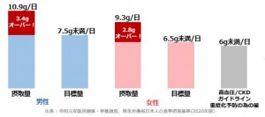 しかしグラフを見てみると目標値と比べて男女ともに約3g以上オーバーしています。